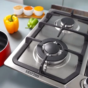 منتج كريبتون: موقد غاز مدمج من الفولاذ المقاوم للصدأ، مزود بإشعال تلقائي، وحلقات ثلاثية، وشعلات شبه سريعة ومساعدة، يتميز باستهلاك منخفض وتدفق مُحسّن لتدفئة فعالة. مثالي للاستخدام السكني والشقق. لون المنتج فضي. قد يختلف لون المنتج قليلاً بسبب إضاءة التصوير أو إعدادات الشاشة.
