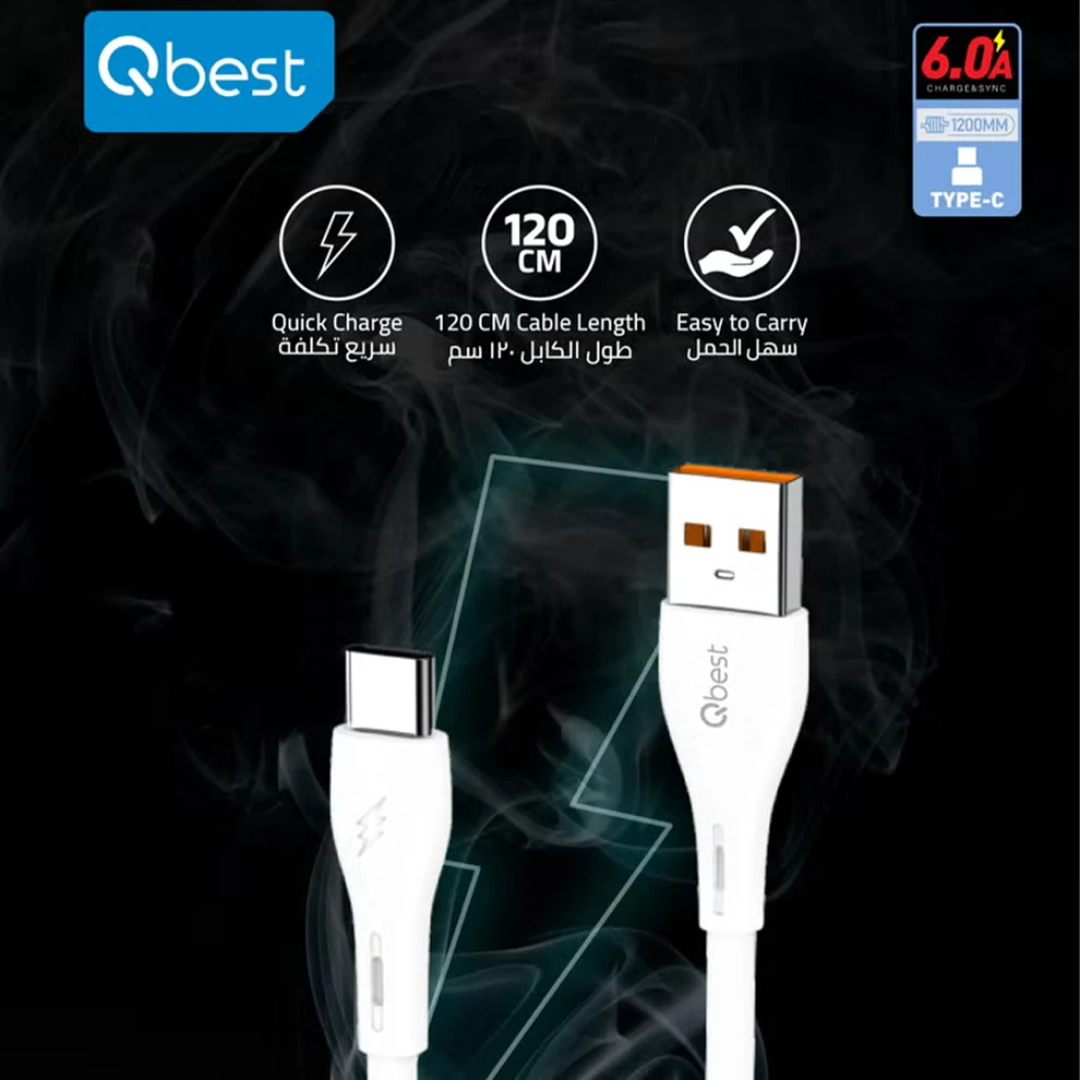 6.0A Fast Charging USB to Type C Cable 1.2M – High-Speed Data Transfer, Durable Design for Android, Apple & Compatible Devices, - White