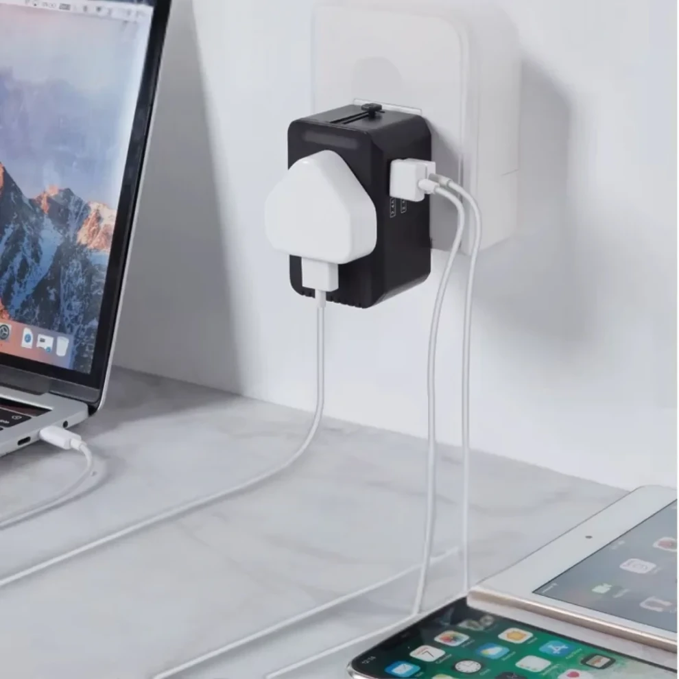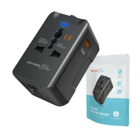The charger includes interchangeable US, AU, EU, and UK plugs, making it an ideal travel companion for international use. With its dual-port functionality and robust safety features, the Porodo Blue Dual Port Universal Charger ensures reliable and convenient charging wherever you go.